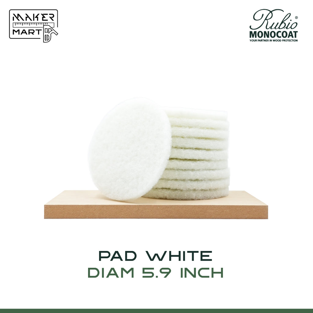 แผ่น White Pad ใช้สำหรับทาหรือเกลี่ยน้ำมัน Rubio Monocoat บนผิวไม้ เหมาะสำหรับการใช้งานเป็นตัวแอพลิเคเตอร์หลัก หรือใช้เป็นแผ่นรีฟิลสำหรับชุด Applicator Set เส้นใยสังเคราะห์ของแผ่นสีขาวดูดซึมน้ำมันน้อยกว่าผ้า จึงช่วยใช้ผลิตภัณฑ์ได้คุ้มค่าสูงสุด เหมาะกับการใช้งานบนพื้นผิวเรียบที่ไม่ต้องการการขัดหยาบ