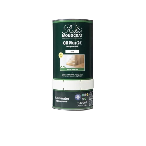 2C stands for 2-component. Part A is the oil, and Part B is an accelerant and hardener. Oil Plus 2C is 0% VOC and does not contain solvents or water. It does not produce lap lines. It is easy to apply and maintain, and can be applied to all wood types. Oil Plus 2C is available in 40 standard colors, which can all be mixed to create endless color possibilities.