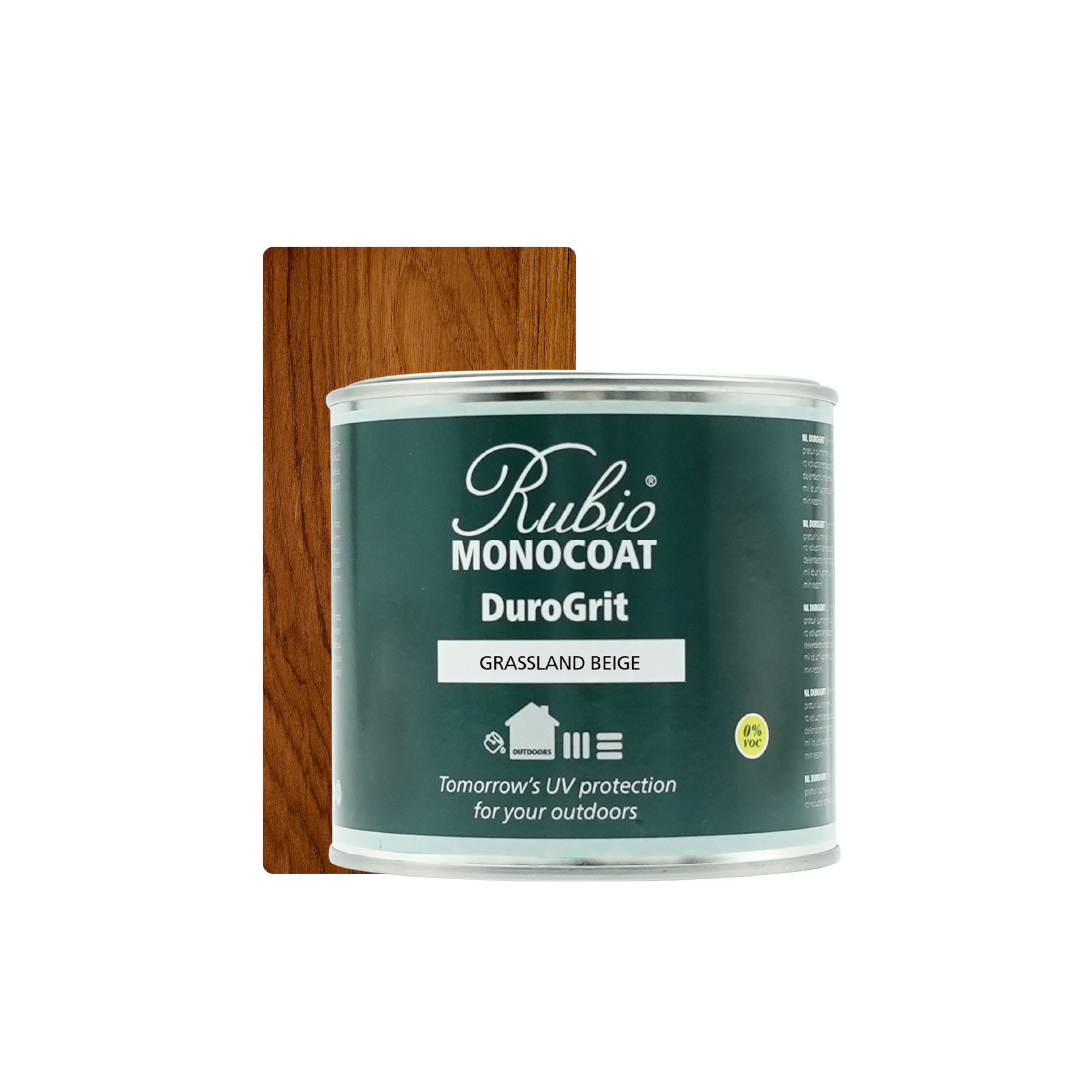 DuroGrit is a sustainable, wood fibre fortified and water-soluble oil that colours and protects all exterior wood in 1 single layer. The patented FibreGrit Technology, where added wood fibres give the oil its unique structure, provides the perfect combination between a saturating and a breathable monocoat system.