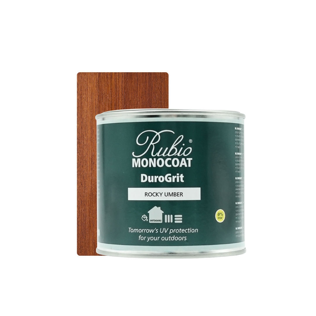DuroGrit is a sustainable, wood fibre fortified and water-soluble oil that colours and protects all exterior wood in 1 single layer. The patented FibreGrit Technology, where added wood fibres give the oil its unique structure, provides the perfect combination between a saturating and a breathable monocoat system.